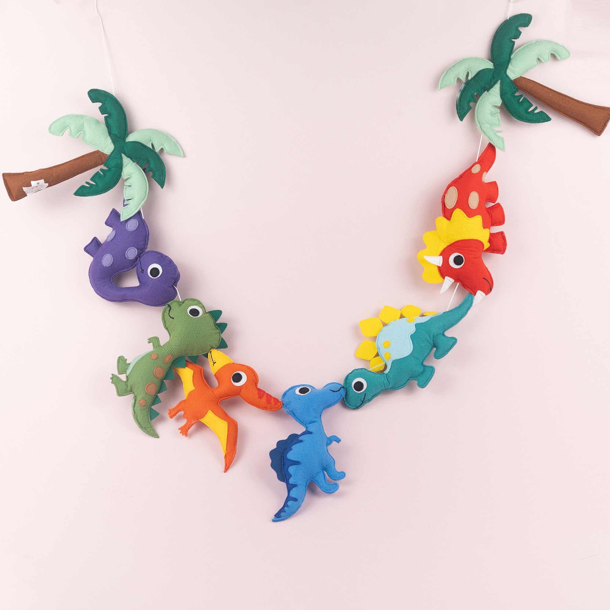 Die Wimpelkette Urzeitfreunde bringt liebevolle Dinoabenteuer direkt ins Kinderzimmer. Acht sorgfältig handgefertigte Filzfiguren – fröhliche Dinosaurier und passende Urzeitmotive – setzen warme, verspielte Akzente über dem Bett, an der Wand oder im Spielbereich.